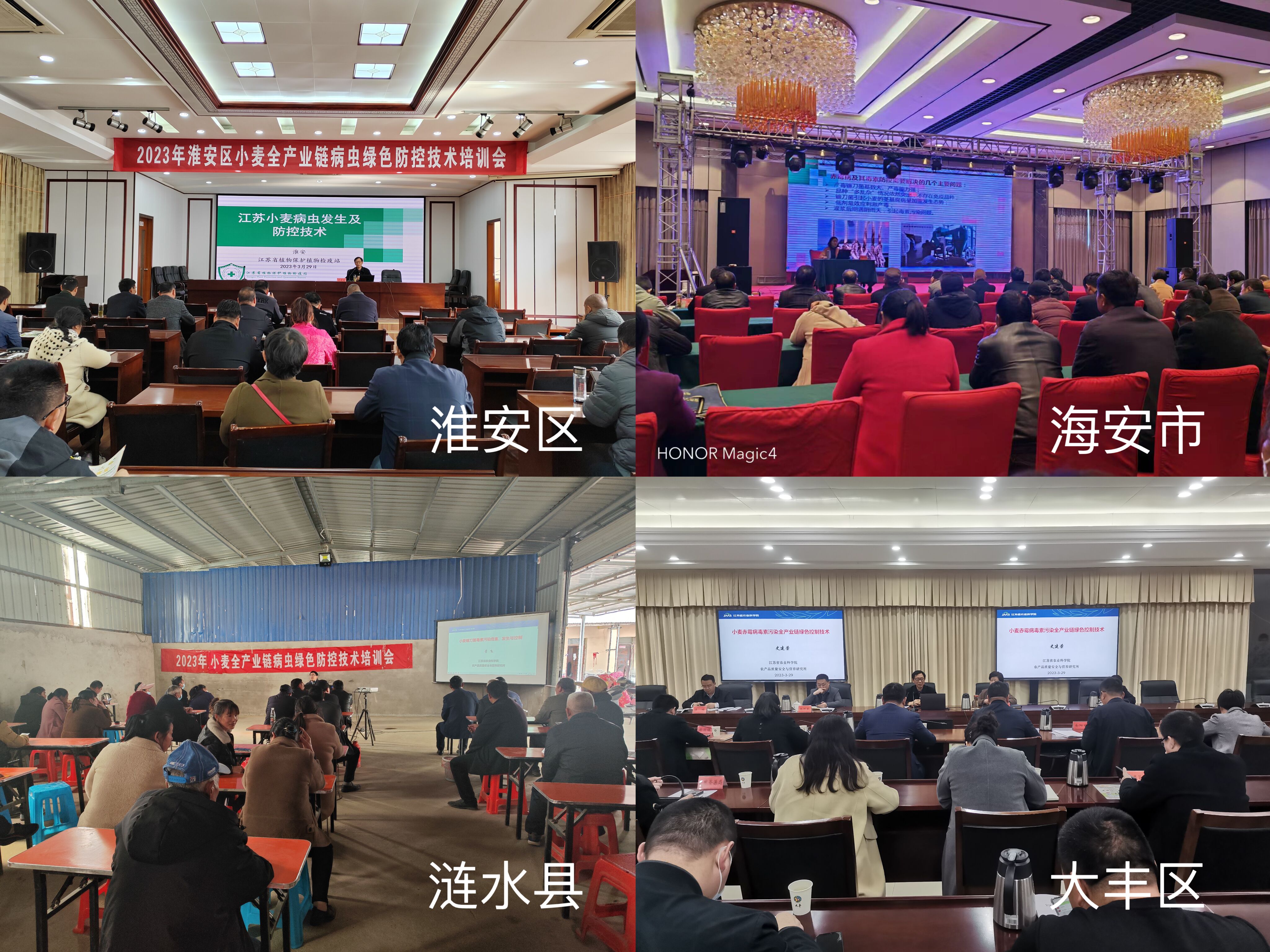 为深入推进农业重大技术—小麦全产业链绿色防控协同推广计划项目执行,3月29-31日,质量安全所联合江苏省植物保护植物检疫站、溧阳中南化工有限公司以及涟水县、淮安区、大丰区、海安市植物保护植物检疫站分别赴涟水、淮安、大丰、海安等地,开展小麦全产业链绿色防控协同推广计划项目培训。相关县(市、区)分管领导、农业服务中心负责人植保员及各镇(区、街道)分管负责人、农业农村局负责人、部分小麦生产经营主体等出席会议,累计培训小麦生产经营主体400余人。