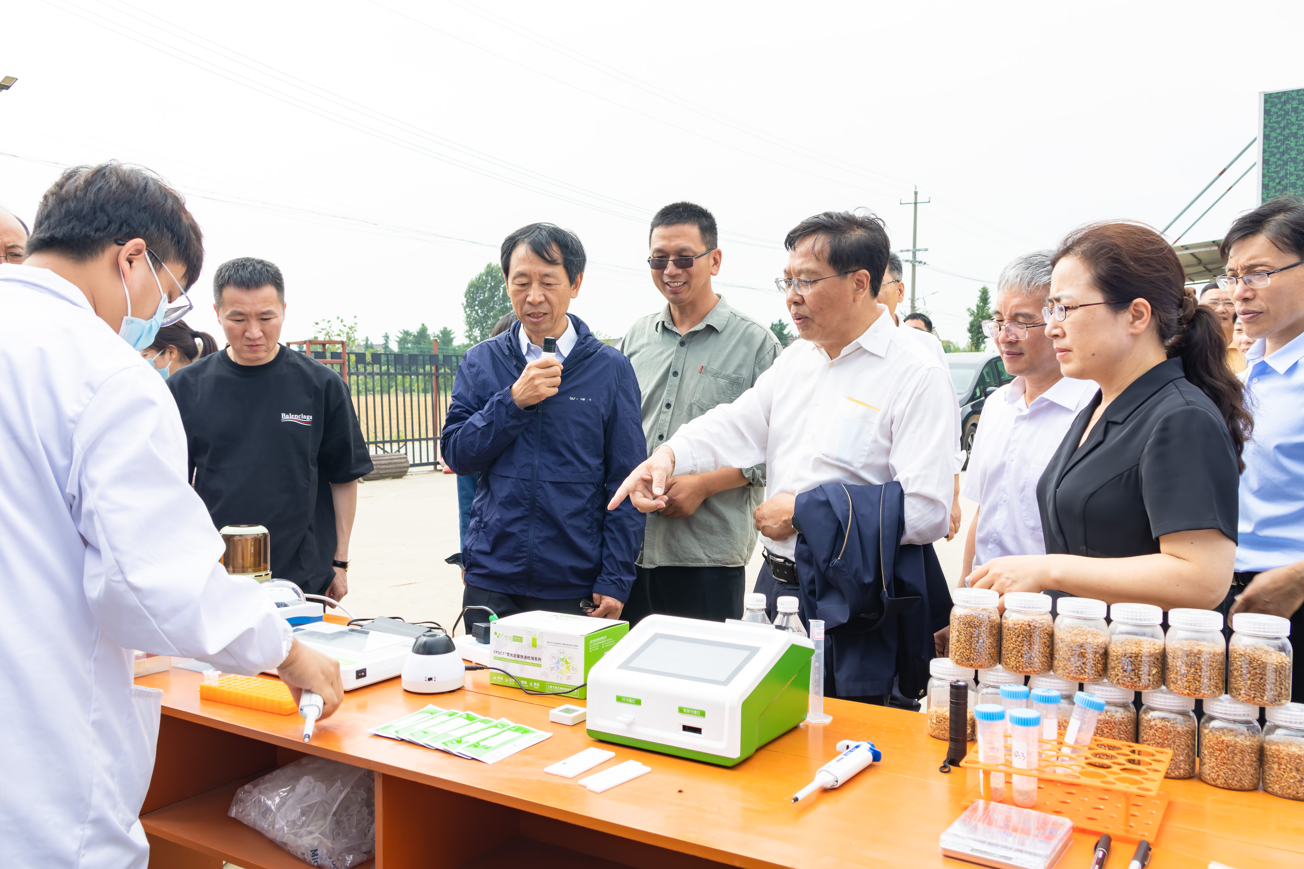 6月3日,由省农科院农产品质量安全与营养研究所主持的2022年农业重大技术协同推广计划“小麦全产业链绿色防控技术协同推广计划”项目观摩会在泰州姜堰召开,中国工程院院士李培武、农业农村部农产品质量安全监管司二级巡视员董洪岩、江苏省农业农村厅一级巡视员唐明珍、农业农村部农产品质量安全标准研究中心主任钱永忠、省农科院副院长刘贤金、孙洪武、院党委委员王冉、农业农村部种植业管理司植保植检处处长王建强、省农业农村厅农产品质量安全监管处处长李旭、科技教育处副处长黄银忠、中储粮江苏质检中心有限公司袁华山总经理、省农科院成果转化处处长顾军应邀出席,项目承担单位负责人、技术骨干及小麦生产经营主体等70余人参加。会议由院质量安全所副所长徐剑宏主持。