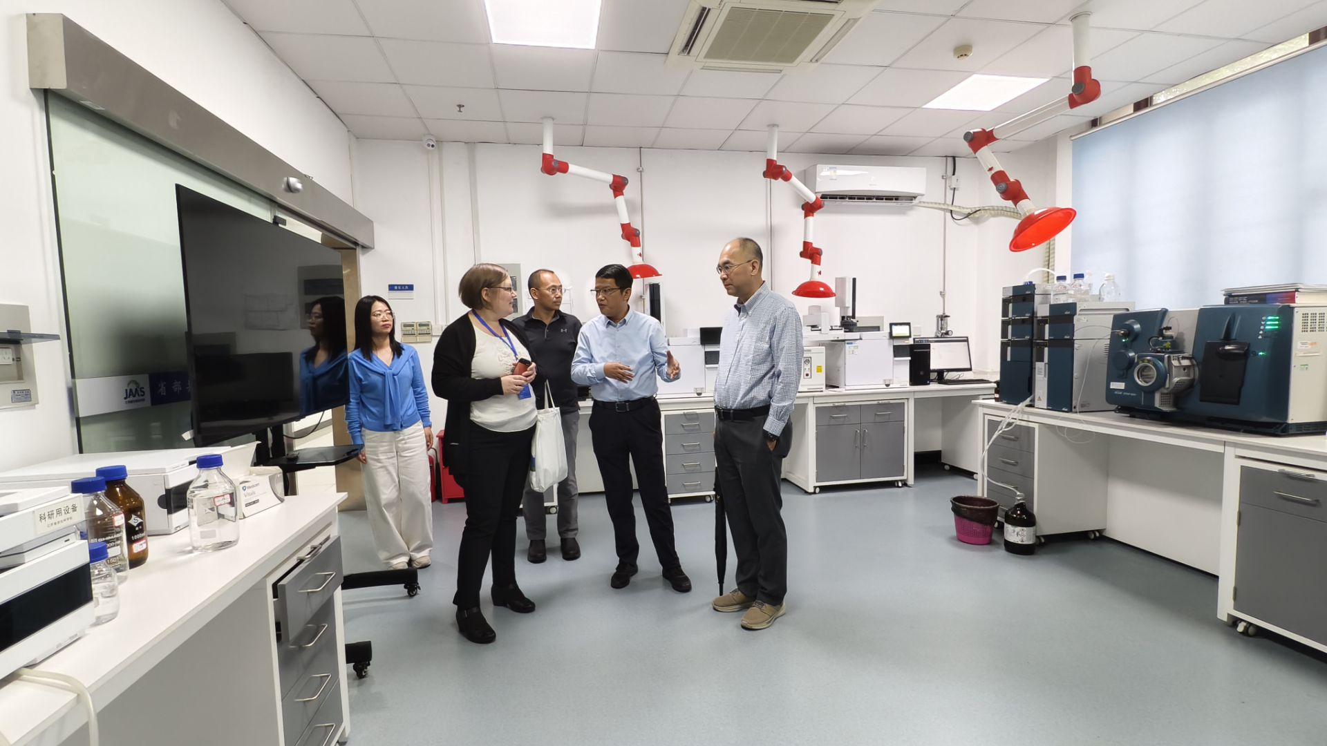 交流期间,双方先在质量安全所举行座谈。余向阳所长介绍了所组织架构、科研进展及成果转化模式,强调依托亚夫科技服务平台推动科研人员深入一线的实践;Everhart 主任则介绍了密西根州立大学相关院系的人才培养、团队结构与科研布局,其团队成员还高度评价我院科技服务布局,并回顾已有合作基础。座谈后,代表团参观了省部共建江苏省食品质量安全重点实验室、智慧农业示范基地等核心平台。
