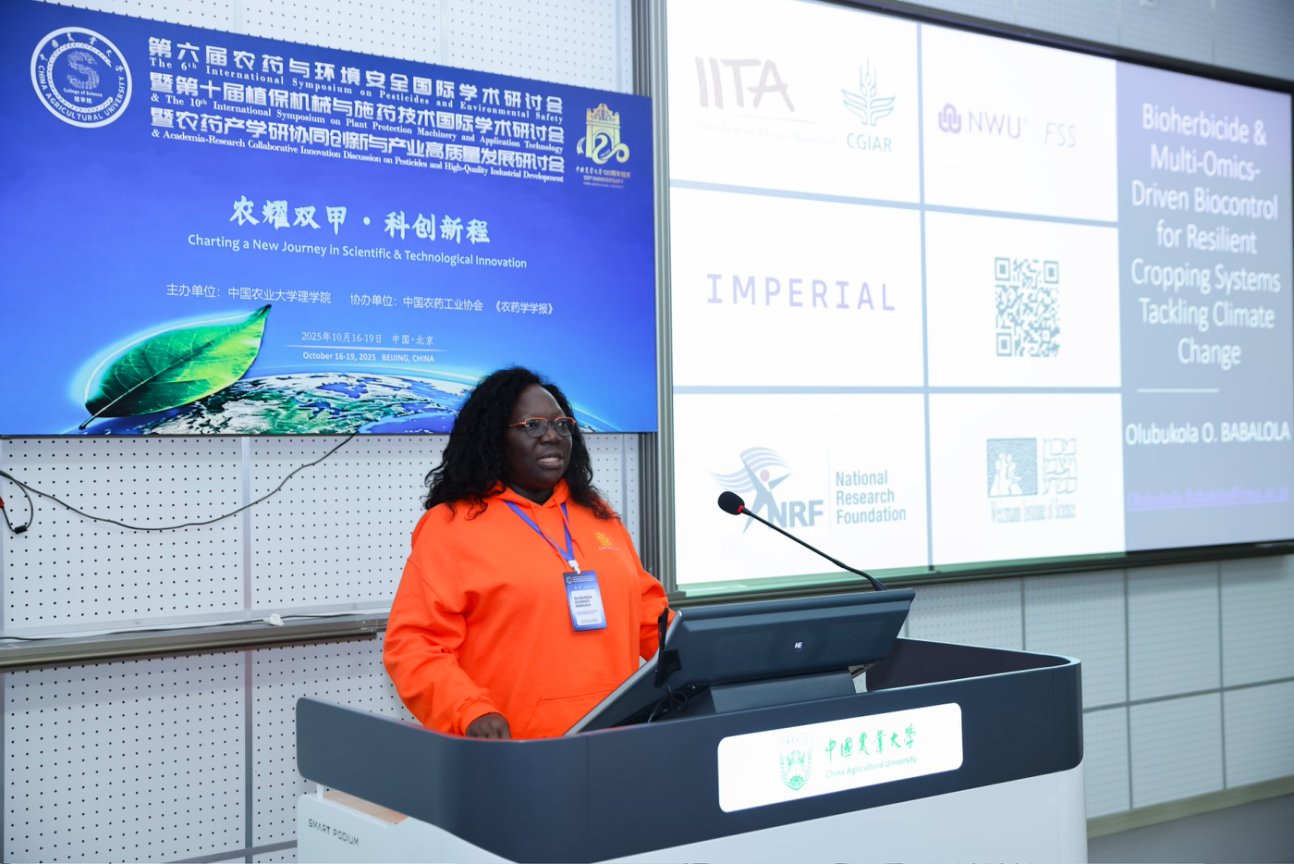 访问期间,Babalola 教授以嘉宾身份,先后出席“第六届农药与环境安全国际学术研讨会”“第二届长三角农产品质量安全国际研讨会”。在两场高规格学术盛会上,她分别作题为《Bioherbicide and Multi-Omics-Driven Biocontrol for Resilient Cropping Systems Tackling Climate Change》(生物除草剂与多组学驱动的生物防治:构建应对气候变化的韧性作物系统)与《Climate Change Drives Aspergillus Mycotoxin Contamination: Challenges for Maize Safety, Food Security, and Human Health》(气候变化驱动黄曲霉毒素污染:对非洲玉米安全、粮食安全及人类健康的挑战)的主旨报告。报告聚焦全球气候变化与农业可持续发展核心议题,凭借前沿研究视角与深刻分析,引发与会学者热烈反响。