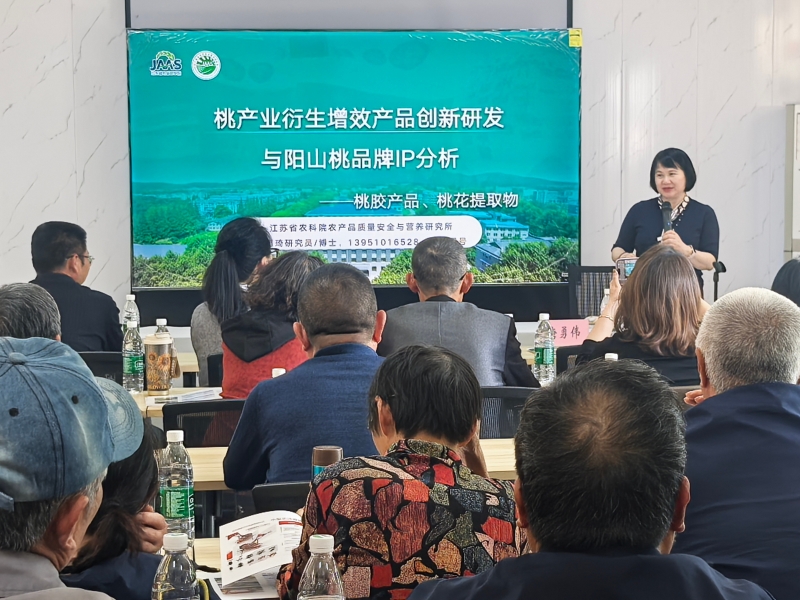 项目组专家、江苏省农业科学院石志琦研究员以“桃产业衍生增效产品创新”为题作专题报告。她结合江苏南北不同产区水蜜桃产业发展现状,系统介绍了桃果精深加工、副产物高值化利用及品牌化运营等创新路径,并通过案例展示了桃胶、桃饮等衍生产品的市场潜力。石志琦指出,延伸产业链、提升附加值,是实现水蜜桃产业可持续发展的关键方向。